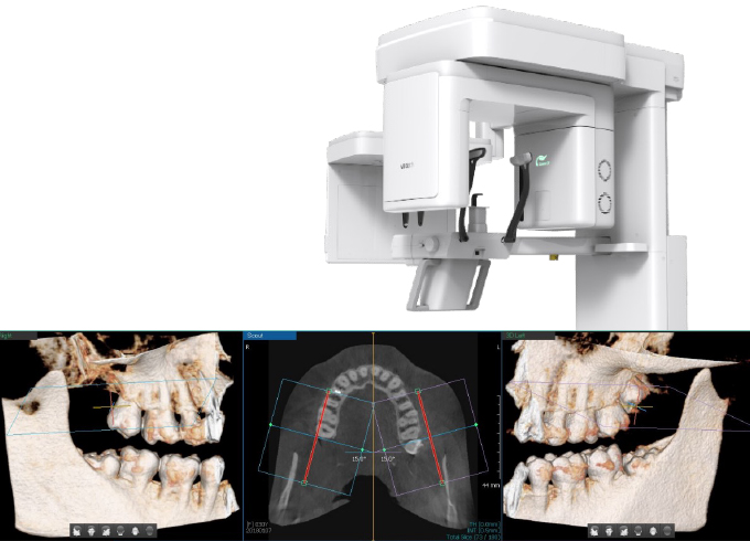 The Green CT 2 is a high tech 4-in-1 digital X-ray imaging system which combines PANO, CEPH (Optional), CBCT, and MODEL scans to create 3D imaging. This Vatech CBCT Scanner produces excellent image quality with less radiation by pairing image processing and accumulated dental imaging experience. With this system, diagnostic precision, heightened treatment planning and patient contentment can be obtained.